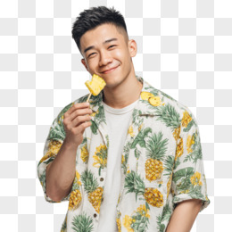 摄影穿热带衬衫的男人吃菠萝免抠元素
