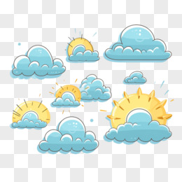 卡通手绘彩色系免抠天气贴纸之多云素材