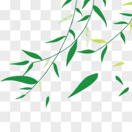 卡通手绘春天随风飘舞的绿色柳叶免抠元素