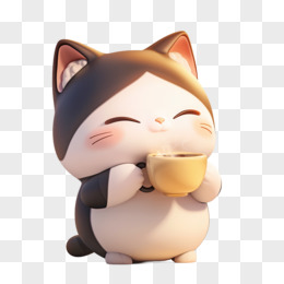 水彩手绘风格办公桌上疲劳睡着的小猫免抠元素