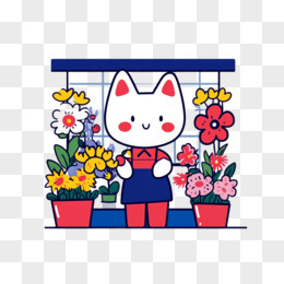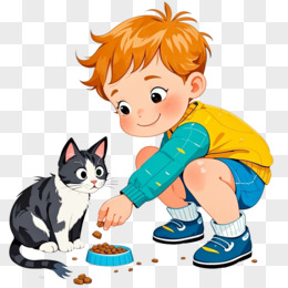 卡通手绘禁止男孩追打小猫咪场景免抠元素