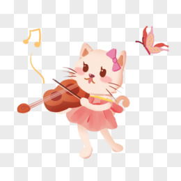 手绘卡通创意小猫拉小提琴表演免抠素材