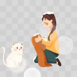 手绘卡通铲屎官给宠物猫洗澡免抠元素