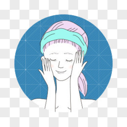 手绘卡通美女卸妆洗脸护肤步骤图元素