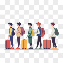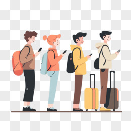 插画一排人拿着行李箱排队通过闸机免抠元素