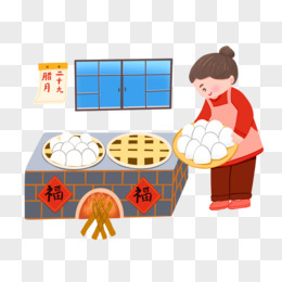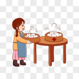 手绘卡通女孩新年土灶蒸馒头免抠元素