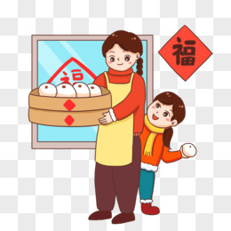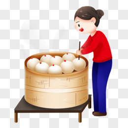 手绘妈妈过年蒸馒头元素