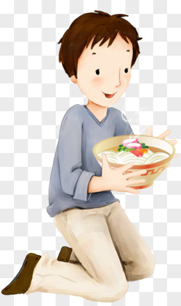 平面插画小女孩端着一碗龙须面免抠元素