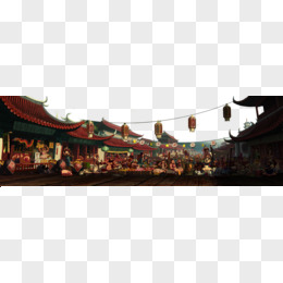 手绘卡通新年母女一起逛庙会插画免抠元素