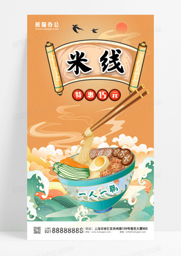 白色手绘米线餐厅类可通用线上宣传海报设计