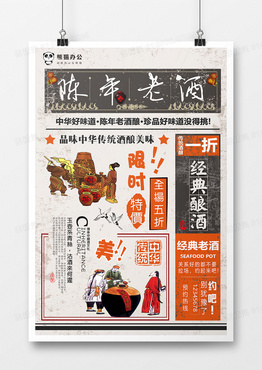 复古风陈年老酒促销海报