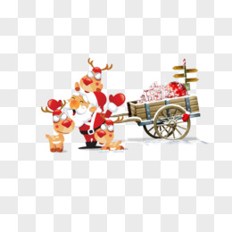 卡通圣诞老人坐麋鹿雪橇送礼物