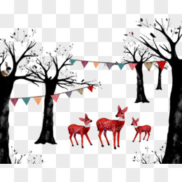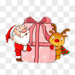 手绘卡通拟人动物拿着礼物合影免抠元素