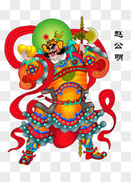 手绘门神赵公明免抠素材