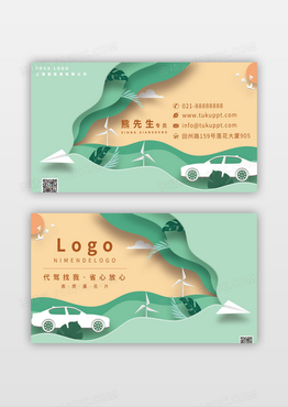 绿色剪纸风时尚大气高端简约代驾名片设计模板