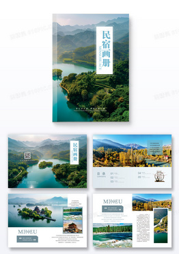 浅蓝色清新简洁创意中国风民宿画册整套设计