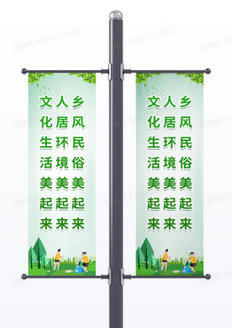 绿色卡通插画乡风民俗人居环境文化生活美丽乡村宣传道旗