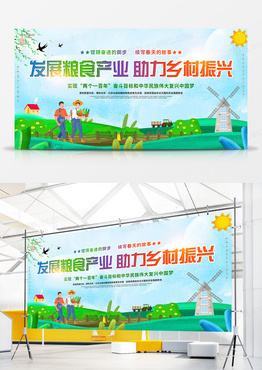 插画风助力乡村振兴宣传展板