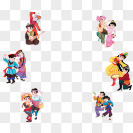 手绘插画风壮族人物男女手拉手免抠元素