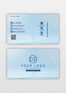 水滴清新唯美大气高端简洁乐器培训名片模板