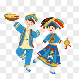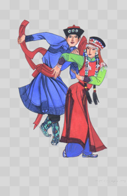 手绘插画风壮族男女舞蹈免抠元素