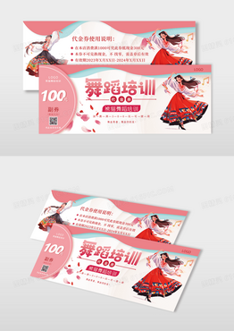 粉色清新民族梦幻风格舞蹈培训代金券舞蹈代金券