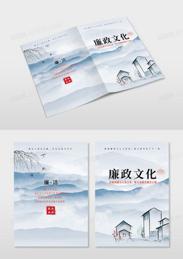 中国风淡色水彩色彩墨简约中国风廉政文化画册封面设计廉洁封面