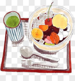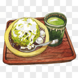 手绘夏日缤纷抹茶芋圆饮品免抠元素