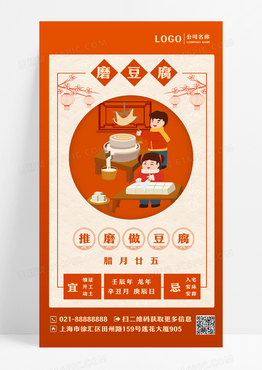 红色风格拜磨豆腐节习俗UI手机海报设计春节习俗设计