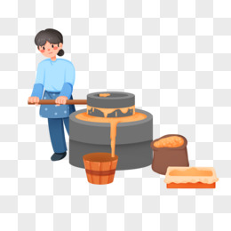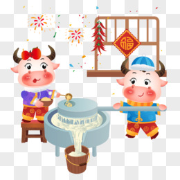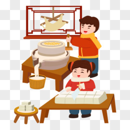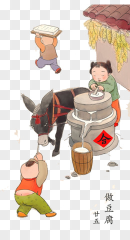 手绘卡通腊月二十五新年磨豆腐做豆腐免抠元素