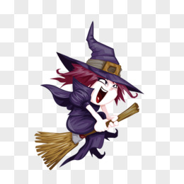 手绘插画风万圣节骑着扫把正在飞行的黄发魔女元素