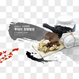 药材与水墨墨迹