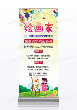 手绘彩墨画笔绘画家美术培训火爆招生X展架