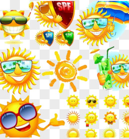 手绘卡通可爱太阳戴墨镜吃雪糕表情元素