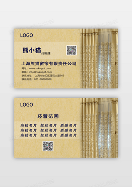 大气窗帘名片简约金色磨砂二维码人物介绍名片设计模板