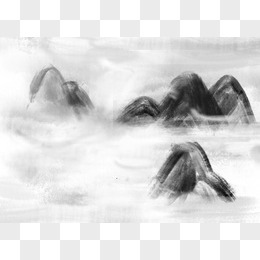 简约山水水墨画免抠元素