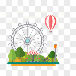 手绘游乐园矢量卡通摩天轮素材