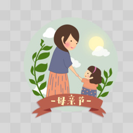 卡通手绘妈妈和女儿相互拥抱免抠元素