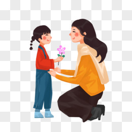 手绘卡通女儿拥抱妈妈插画免抠元素