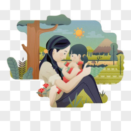 卡通妈妈抱着孩子免抠元素