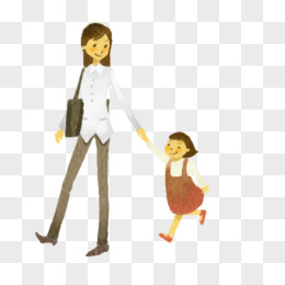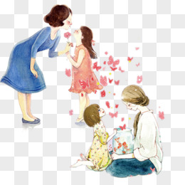 卡通妈妈给女儿送花免抠素材