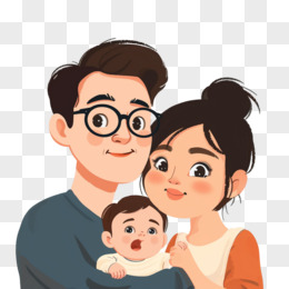 卡通爸爸妈妈抱着婴儿免抠元素