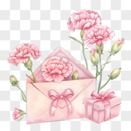 卡通手绘母亲节粉色康乃馨精美礼物免抠元素