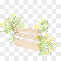卡通漫画小鸟植物木板