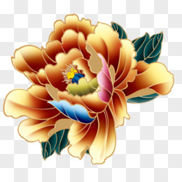 中国风水彩金边牡丹免扣元素
