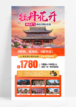 手绘国潮风格盛开的牡丹花与枝头鸟儿元素