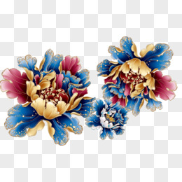 国潮花鸟孔雀牡丹喜庆手绘素材