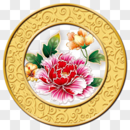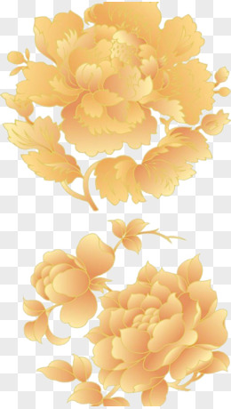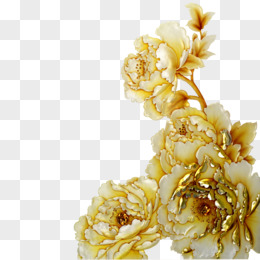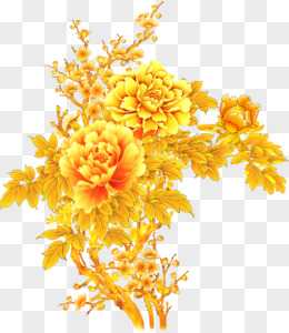 金色浮雕蝴蝶牡丹花纹装饰元素