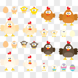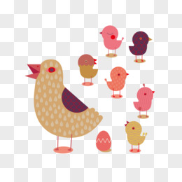 手绘矢量卡通可爱鸡妈妈和小鸡仔元素