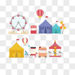 一组矢量膨胀风3D立体游乐园设施元素套图合集